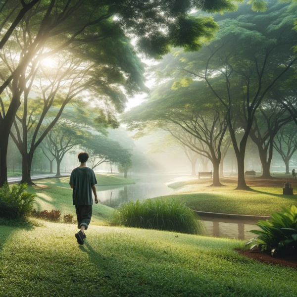 하루에 20-30분 정도 가볍게 걷기를 권장합니다. 공원이나 조용한 길을 선택하여 마음의 안정을 취하는 것도 좋습니다.