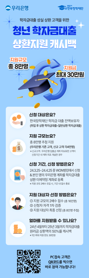 2024년 우리은행 청년학자금대출 상환지원 캐시백 이벤트